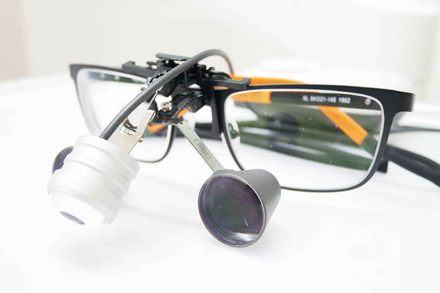 肉眼では見えにくいむし歯などは、拡大鏡(ルーペ)で拡大して治療をします。患者さんになるべく少ない負担で精密な治療を提供します。